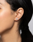 These diamond stud earrings create a look of iconic sophistication. Set in 18 k white gold, round diamonds in a round bezel, a pear-shaped bezel, and an emerald-shaped bezel provide enchanting contrast, reflecting the light in intricate patterns. A new classic, these diamond earrings are resolutely modern in their simple, evocative shape. Selecting the finest ethically sourced diamonds, Bijoux Birks artisans create timeless and exquisite designs.