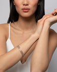 From the Birks Muse® silver collection. Sterling silver bangle with monogram designs. Has the signature Muse® mesh motif.
