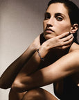 Resplendent with beautiful stones, this bangle is studded with a faceted triplet that encases a sliver of mother-of-pearl between layers of rock crystal, a doublet of rock crystal and hematite and another triplet that shines with rock crystal over slices of mother-of-pearl and black onyx. The piece is cast in 925 silver which nicely contrasts the richness of the surrounding colors. Wear it alone or in an artfully stacked grouping of bracelets. Resplendent with beautiful stones, this bangle is studded with a faceted triplet that encases a sliver of mother-of-pearl between layers of rock crystal, a doublet of rock crystal and hematite and another triplet that shines with rock crystal over slices of mother-of-pearl and black onyx. The piece is cast in 925 silver which nicely contrasts the richness of the surrounding colors. Wear it alone or in an artfully stacked grouping of bracelets.