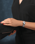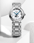 A silvery moon on a spring night; a star that glistens reaches its peak and then disappears. A symbol of passing time, living time and the moon that entrances us with its rounded, delicate lines the Longines PrimaLuna is a tribute to this silvery star. Its soft silhouette is enhanced by the exquisite purity of the dial and the whole is illuminated by a play of sparkling diamonds.