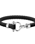 Sailing bracelet in stainless steel and black rubber.