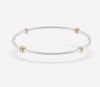 The Kini Bangle is comprised of a single, full-round bangle crafted from 18k yellow gold or .925 sterling silver and features four quadrants of orbiting annulets in solid and pavé construction. Added nodes ensure the unfixed annulets are viewable from all directions, providing a tactile experience and contrasting display. Each Kini Bangle is individually handmade in Los Angeles.