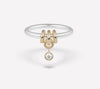 The Pia is comprised of a single band in solid .925 sterling silver or 18k yellow gold, with the option for u-pavé white diamonds set throughout. This style features three, unfixed annulets and a central drop charm with a stunning white diamond. The Pia is perfect for stacking with other Spinelli Kilcollin styles or as a lightweight, everyday ring. Each Pia is individually handmade in Los Angeles.