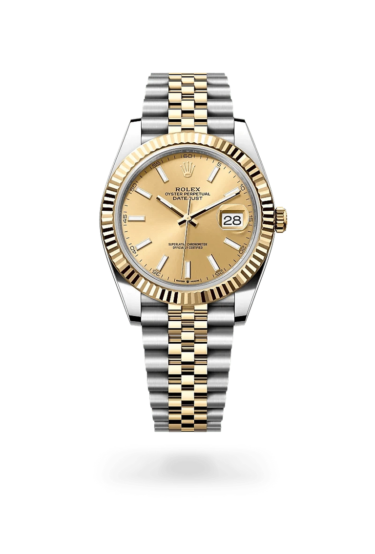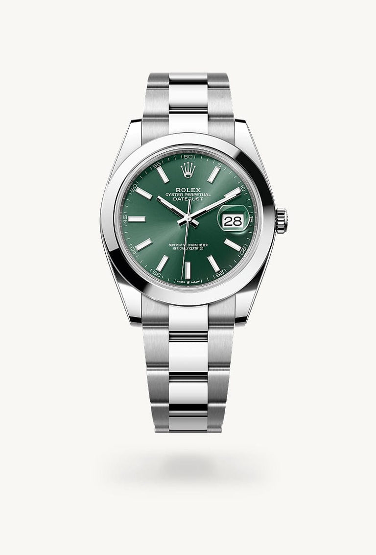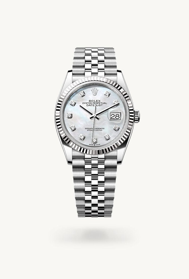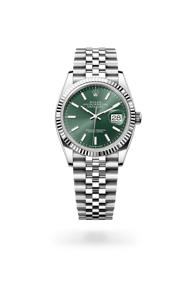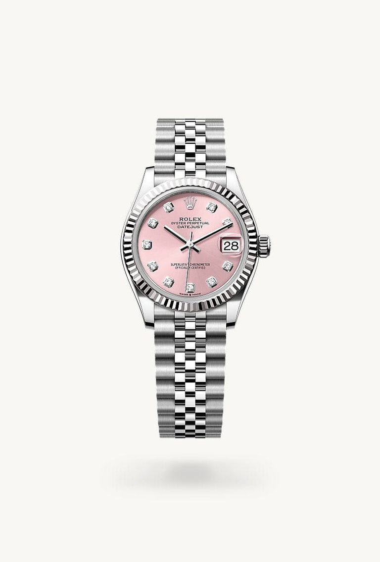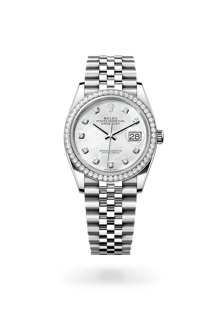 Comfort and eleganceCelebrating the 40th anniversary of Rolex in 1945, the Jubilee bracelet was specially designed for the Datejust. This fluid and comfortable five-piece link metal bracelet is integral to the Datejust’s identity and enhances the timeless elegance of the model. The Datejust is also available with an Oyster bracelet or, on precious metal versions, a President bracelet.