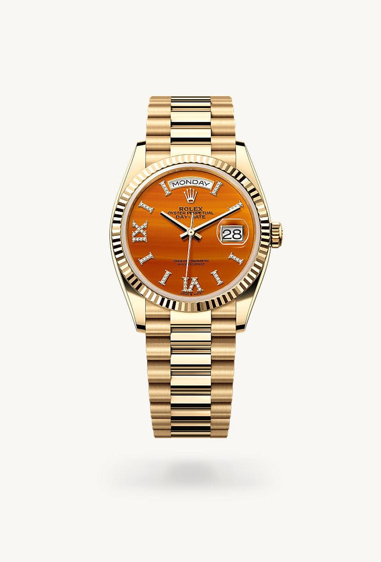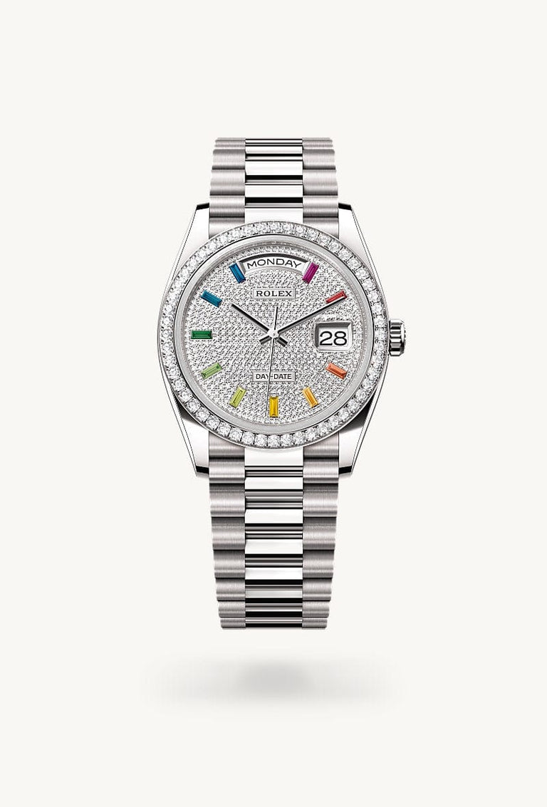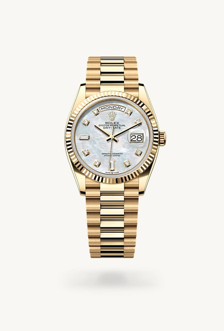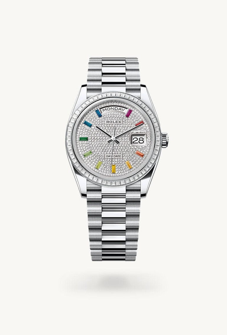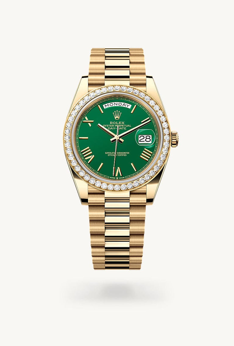 Decades come and go, but the Day-Date remains where it has always been – at the cutting edge of modernity. A timepiece of prestige and the fruit of Rolex's watchmaking expertise, the Day-Date accompanies those personalities who shape the world in their respective disciplines through their commitment, human qualities and creative genius.