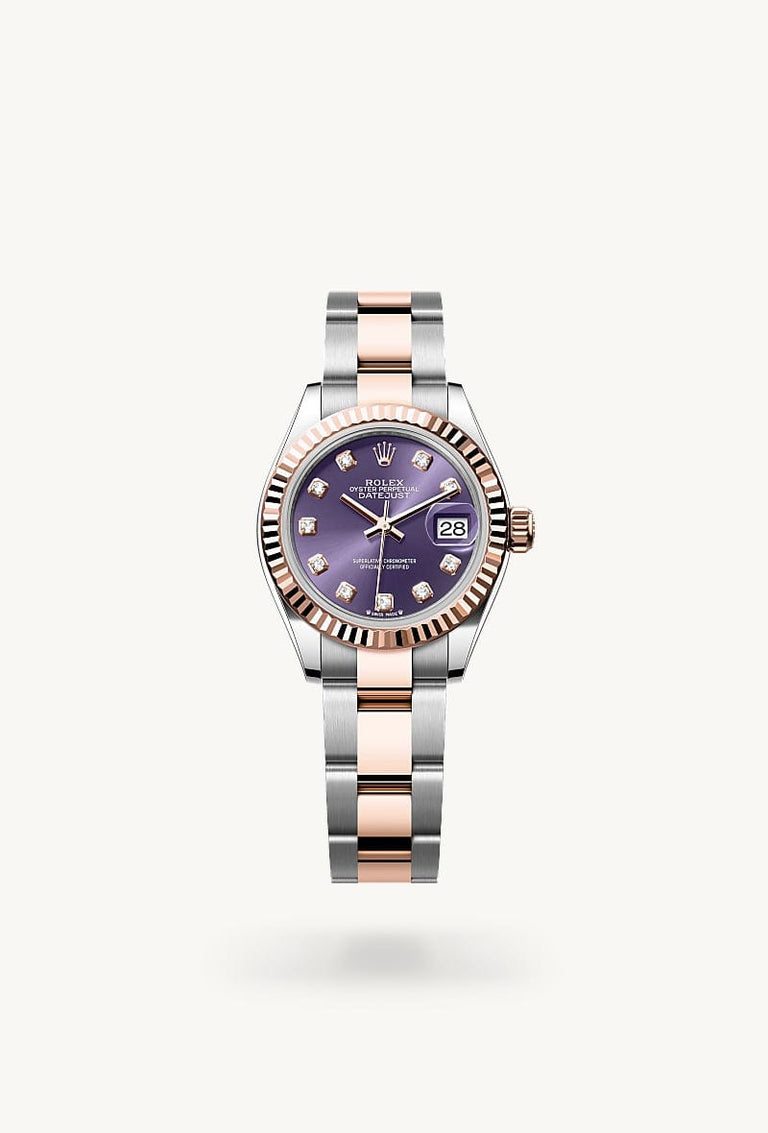 Sunray-finish dials, paved with diamonds or crafted from mother-of-pearl – the Lady-Datejust offers so many choices that wearers can easily find one to reflect their personality. Depending on the version, the Lady-Datejust is available with a domed, fluted or diamond-set bezel.