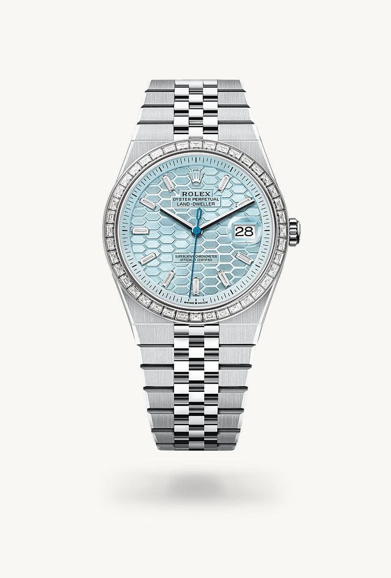 Like all Rolex watches, the Oyster Perpetual Land-Dweller 36 and the Oyster Perpetual Land-Dweller 40 are covered by the Superlative Chronometer certification redefined by Rolex in 2015. This designation testifies that every watch leaving the brand’s workshops has successfully undergone a series of tests conducted by Rolex in its own laboratories according to its own criteria, following the official certification of the movements by the Swiss Official Chronometer Testing Institute (COSC). These in-house certification tests apply to the fully assembled watch, after casing the movement, guaranteeing superlative performance on the wrist in terms of precision, power reserve, waterproofness and self-winding. The precision of a Rolex Superlative Chronometer is of the order of −2/+2 seconds per day – the rate deviation tolerated by the brand for a finished watch is significantly smaller than that accepted by COSC for official certification of the movement alone.