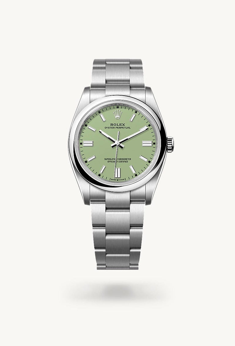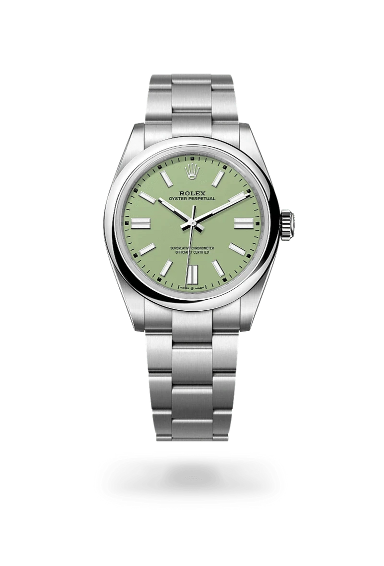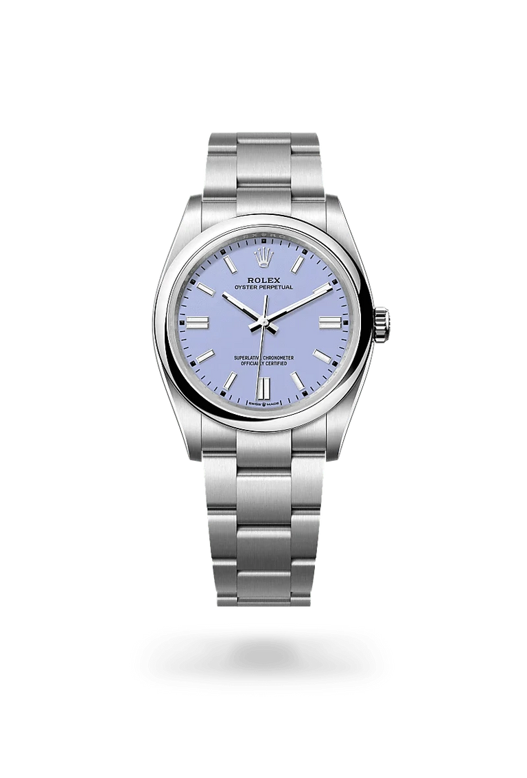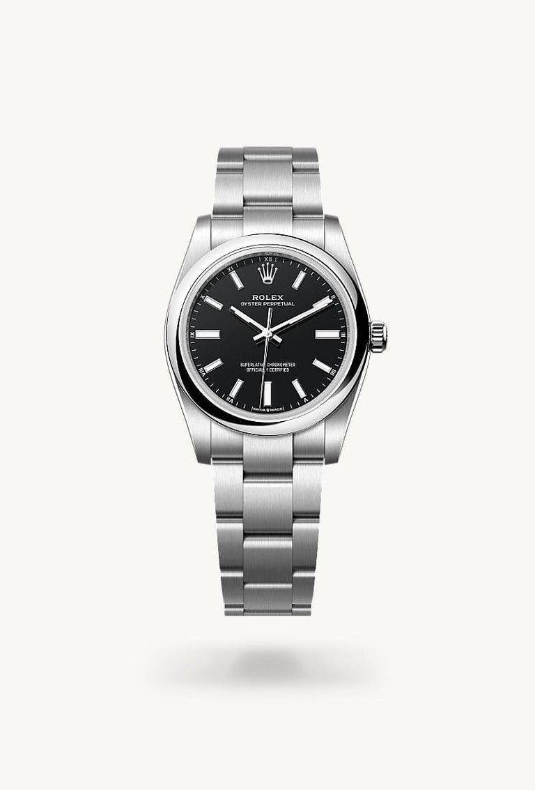 Oyster Perpetual watches are direct descendants of the original Oyster launched in 1926, the world’s first waterproof wristwatch and the foundation on which Rolex has built its reputation. A certified Superlative Chronometer, the Oyster Perpetual features all the key characteristics of the Oyster Perpetual collection – excellent chronometric precision, the waterproof Oyster case, and a mechanical self-winding movement via Perpetual rotor. Understated and elegant, this timepiece is known for its universal, classic style.