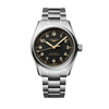 Self-winding mechanical movement beating at 25'200 vibrations per hour, with a monocrystalline silicon balance-spring power reserve up to 72 hours. Screw-in crown, water-resistant to 10 bar, scratch-resistant sapphire crystal, with several layers of anti-reflective coating on both sides. Black matt dial, swiss super-luminova®. Stainless steel bracelet, with double security folding clasp with micro adjustment system.